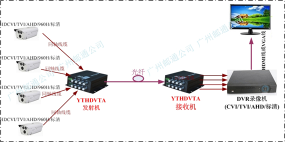 YTHDCTA系列同轴高清光端机可以通过单芯光纤长距离光纤传输同轴I高清复合视频而设计,专用于安防视频监控系统同轴高清摄像机传输设备。广州邮通公司采用自主研发高速FPGA、CPLD、ADC、DAC、光源等技术,完成非压缩数字光电转换技术、同轴高清混合传输技术。使用光纤点对点传输百万像素级高清视频,实现无延时、高可靠性的视频传输,确保视频信号经过远程传送而无损伤。采用国内一线品牌光模块,确保在复杂光传输链路条件下,数字光端机传输各类业务信号指标。单根光纤可同时传输1~16路HDCVI/TVI/AHD高清复合视频。