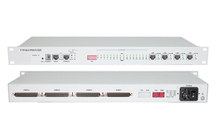 YTP16E4型PDH光端机是广州邮通公司使用自主开发的专用集成电路研制生产的光传输设备。该系列设备是以超大规模集成电路为核心构成的多路光电合一传输设备,支持16个E1接口+4个可隔离、独立分配带宽的10/100M以太网接口,可支持选配双光路1+1无损保护,适用于小容量交换机组网、用户环路网,移动通信(基站)、专网、DDN网等。