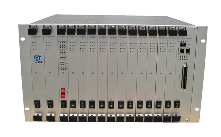 19标准宽6U结构,双电源,提供16个业务插槽位,可混合插入14块用户支路板(即以下的A、B、C三种板)