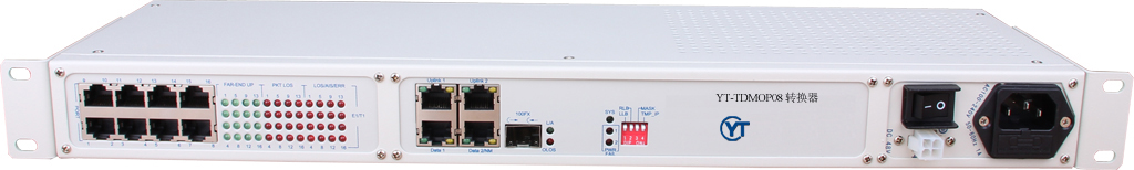 8*E1反向协议转换器-YT-TDMoP08分组网络电路仿真设备是基于时分复用和IP基础上发展的一项新技术,能够在IP网络透明地传输,延伸一到八个E1电路信号,同时通过下行网口提供一个数据口,支持所有的传统E1和IP业务,可接入语音、数据、传真、信令等各种电信业务。