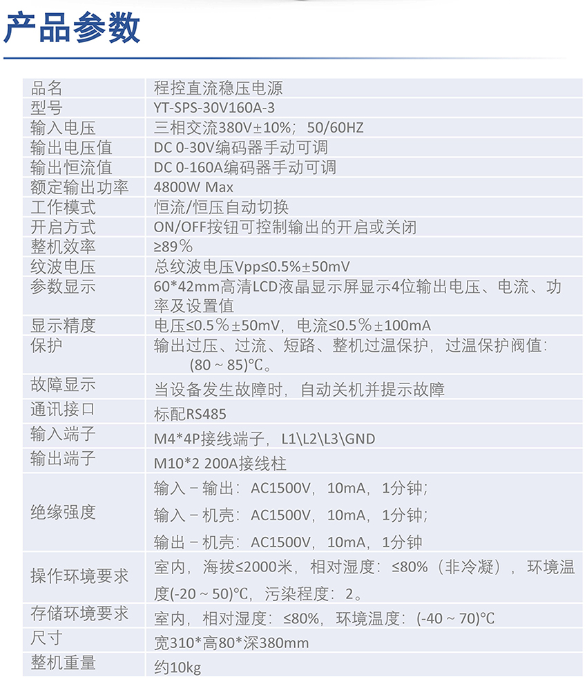三相交流380V程控直流稳压电源YT-SPS-30V160A-3